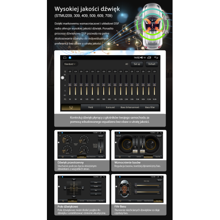 Radio jest oparte o markowe podzespoły (niemiecko- włoski wzmacniacz ST 4*50W HiFi Mosfet, Japoński procesor DSP i ośmiordzeniowy procesor), co oferuje szybkie działanie i bardzo dobrą jakość dźwięku i obrazu. Oprócz tego, dzięki systemowi Android 10 z menu w języku polskim możesz oglądać swoje ulubione filmy, słuchać muzyki, surfować po internecie, przeglądać newsy ze świata, oraz wgrywać dowolne aplikacje z Google Play takie jak Google Maps, Spotify, YouTube, Netflix, Yanosik (dzięki, któremu otrzymasz aktualne ostrzeżenia, nawigacja omijająca korki i bazę fotoradarów z niemal całej Europy) i wiele innych! Dzięki wbudowanej funkcji Bluetooth możesz bezprzewodowo połączyć się z telefonem komórkowym, co pozwala na odbieranie połączeń i prowadzenie rozmów. Wbudowany zestaw głośnomówiący pozwala rozmawiać z innymi słysząc ich w głośnikach auta, co znacznie zwiększa bezpieczeństwo w trakcie jazdy i pozwala uniknąć mandatów.