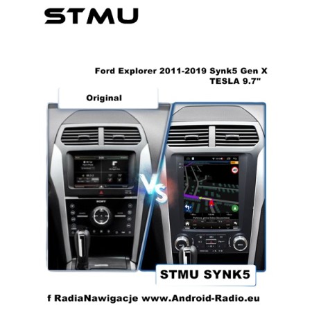 Markowe Radio Nawigacja Android do Ford Explorer Synk5 Gen2 X Tesla 9.7" (orientacja pionowa ekranu z panelem klimy w aplikacji ekranowej).
