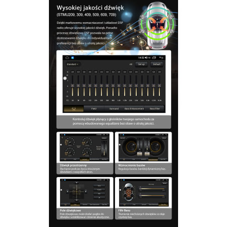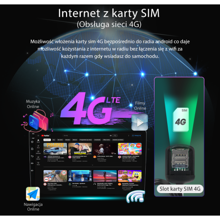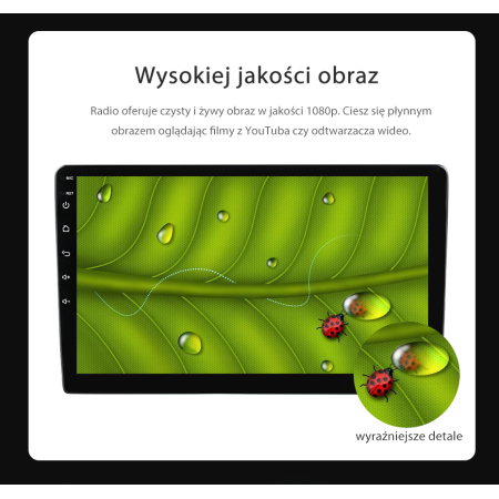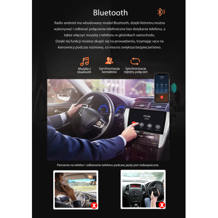 Radio jest oparte o markowe podzespoły (niemiecko- włoski wzmacniacz ST 4*50W HiFi Mosfet, Japoński procesor DSP i ośmiordzeniowy procesor), co oferuje szybkie działanie i bardzo dobrą jakość dźwięku i obrazu. Oprócz tego, dzięki systemowi Android 10 z menu w języku polskim możesz oglądać swoje ulubione filmy, słuchać muzyki, surfować po internecie, przeglądać newsy ze świata, oraz wgrywać dowolne aplikacje z Google Play takie jak Google Maps, Spotify, YouTube, Netflix, Yanosik (dzięki, któremu otrzymasz aktualne ostrzeżenia, nawigacja omijająca korki i bazę fotoradarów z niemal całej Europy) i wiele innych! Dzięki wbudowanej funkcji Bluetooth możesz bezprzewodowo połączyć się z telefonem komórkowym, co pozwala na odbieranie połączeń i prowadzenie rozmów. Wbudowany zestaw głośnomówiący pozwala rozmawiać z innymi słysząc ich w głośnikach auta, co znacznie zwiększa bezpieczeństwo w trakcie jazdy i pozwala uniknąć mandatów.