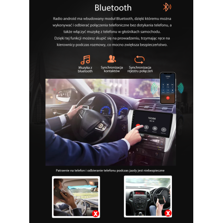 Radio jest oparte o markowe podzespoły (niemiecko- włoski wzmacniacz ST 4*50W HiFi Mosfet, Japoński procesor DSP i ośmiordzeniowy procesor), co oferuje szybkie działanie i bardzo dobrą jakość dźwięku i obrazu. Oprócz tego, dzięki systemowi Android 10 z menu w języku polskim możesz oglądać swoje ulubione filmy, słuchać muzyki, surfować po internecie, przeglądać newsy ze świata, oraz wgrywać dowolne aplikacje z Google Play takie jak Google Maps, Spotify, YouTube, Netflix, Yanosik (dzięki, któremu otrzymasz aktualne ostrzeżenia, nawigacja omijająca korki i bazę fotoradarów z niemal całej Europy) i wiele innych! Dzięki wbudowanej funkcji Bluetooth możesz bezprzewodowo połączyć się z telefonem komórkowym, co pozwala na odbieranie połączeń i prowadzenie rozmów. Wbudowany zestaw głośnomówiący pozwala rozmawiać z innymi słysząc ich w głośnikach auta, co znacznie zwiększa bezpieczeństwo w trakcie jazdy i pozwala uniknąć mandatów.